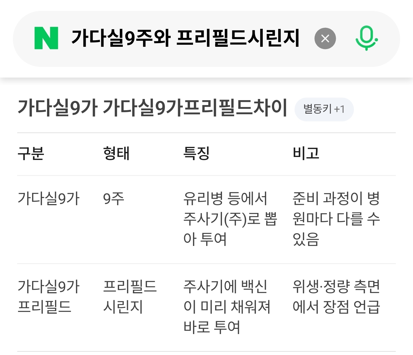 백신이 들어있는 형태의 차이일뿐 효과 효능에 큰차이가 없으니 둘다 선택해도 됩니다.