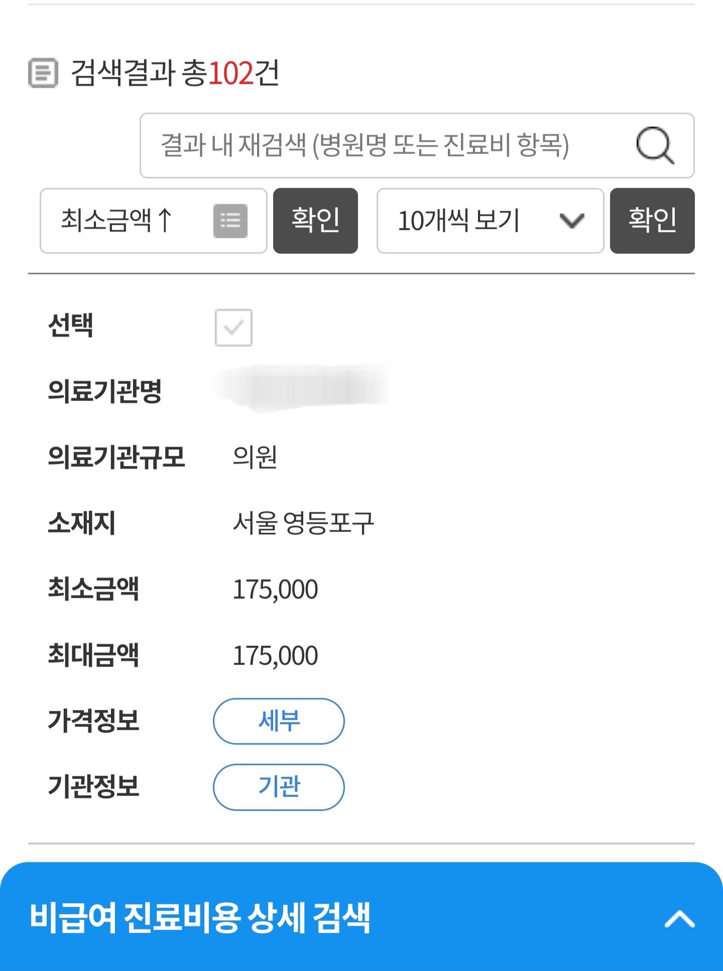 그러면 바로 비급여 진료비 정보가 보일텐데 클릭합니다.