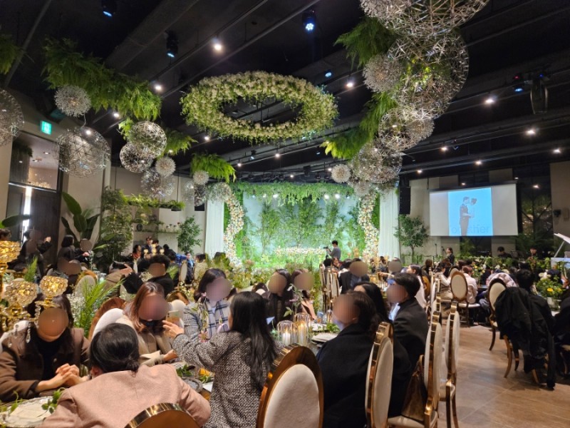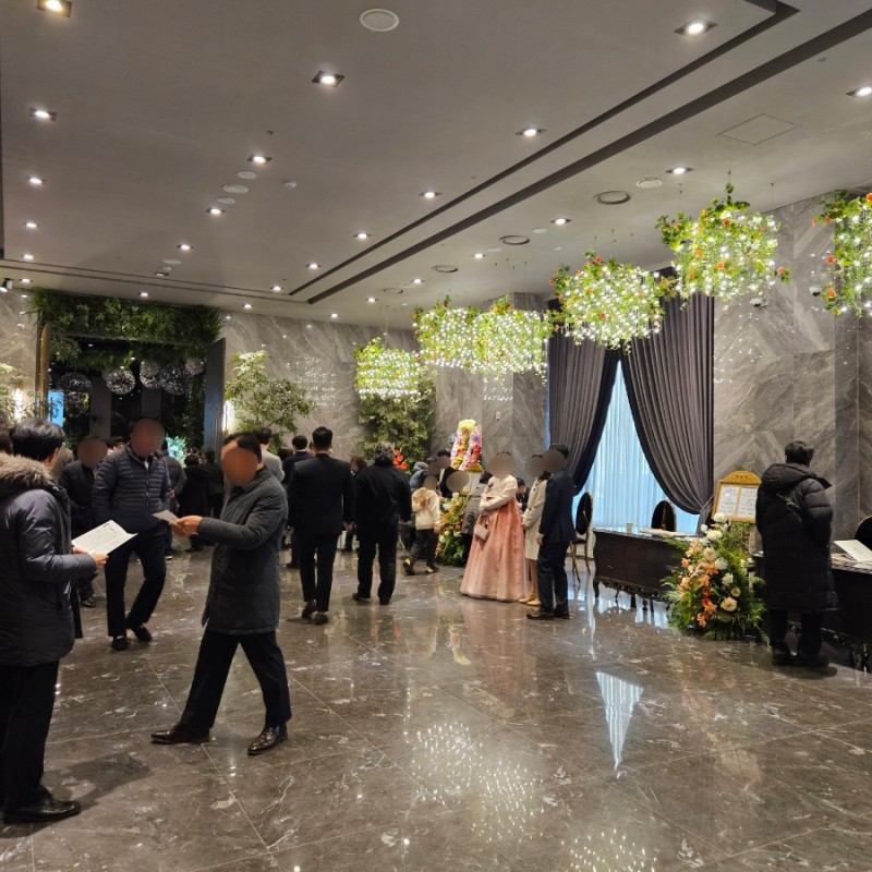 하객들이 웨딩홀 중간중간 길목에 서있었는데 그게 시야를 가리다 보니 조금 정신없고 답답해 보였다