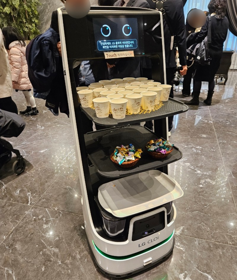 2층 로비에서도 로봇이 돌아다니고 있었고 1층에는 하객들이 앉아있을 수 있는 별도의 공간이 없었는데