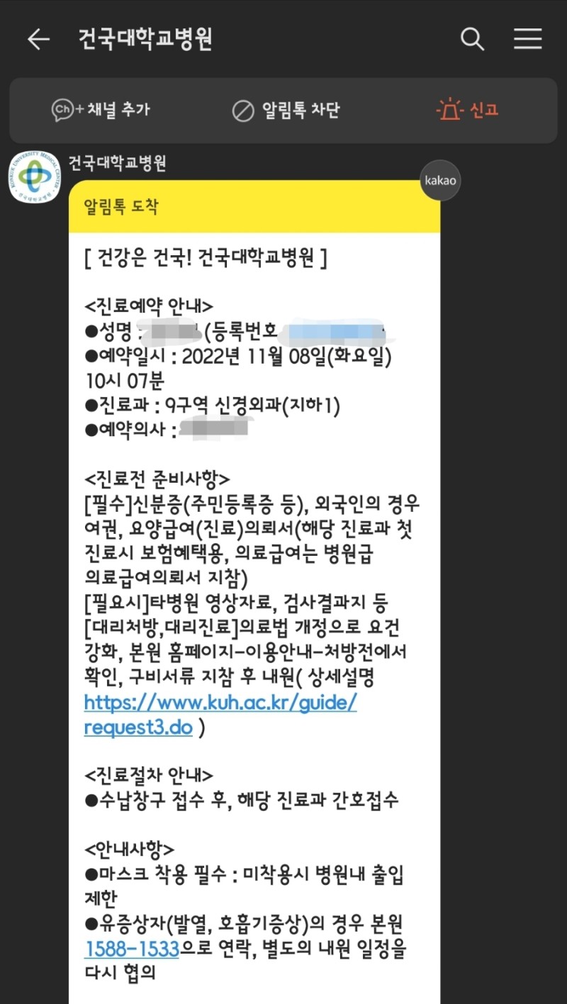 병원 방문 전에 준비할 내용을 카톡으로 보내준다.