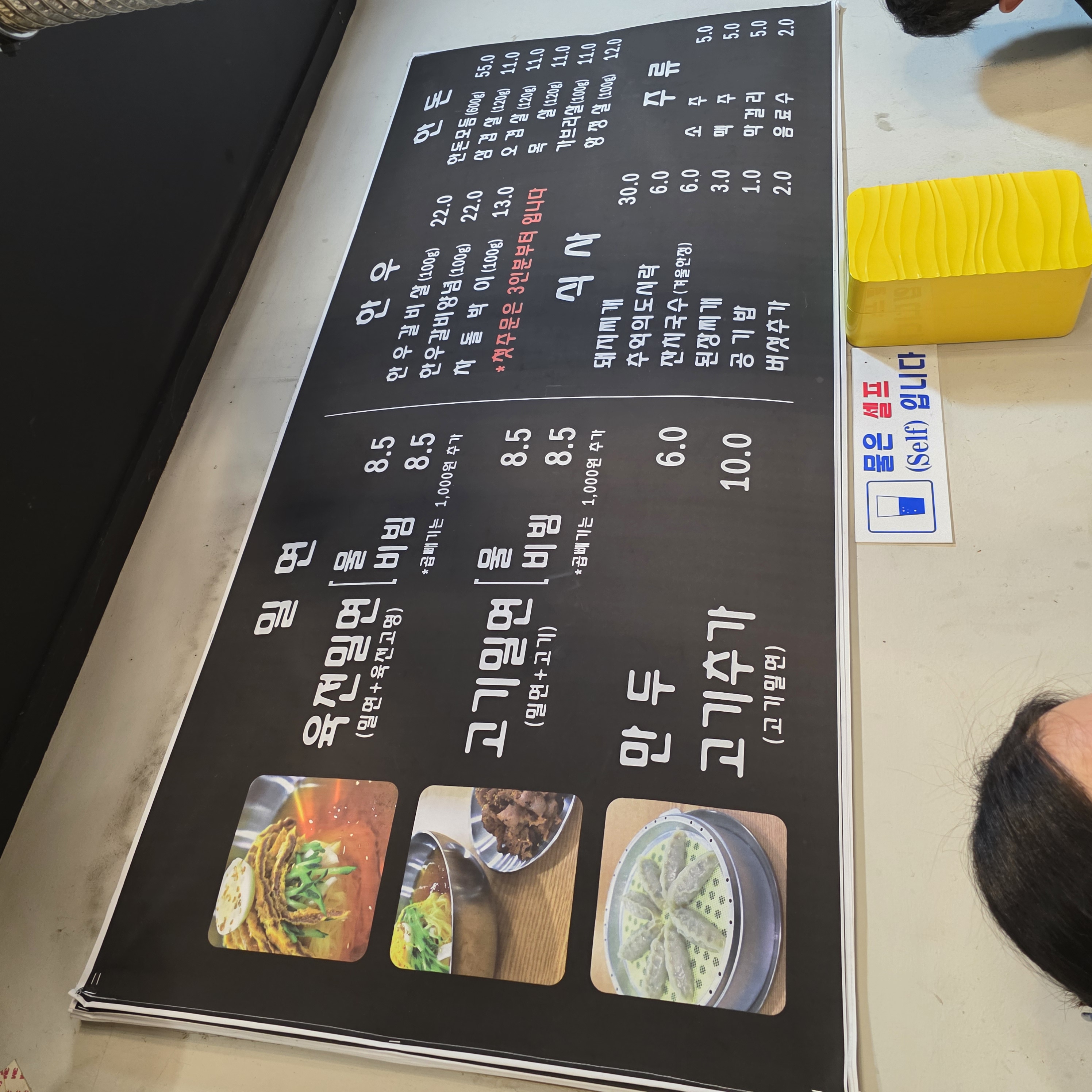 한우, 한돈, 밀면이 대표 메뉴에요.