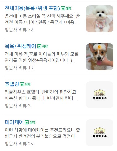 애견미용, 강아지 목욕+위생케어, 애견 호텔링, 데이케어 다 가능해요.