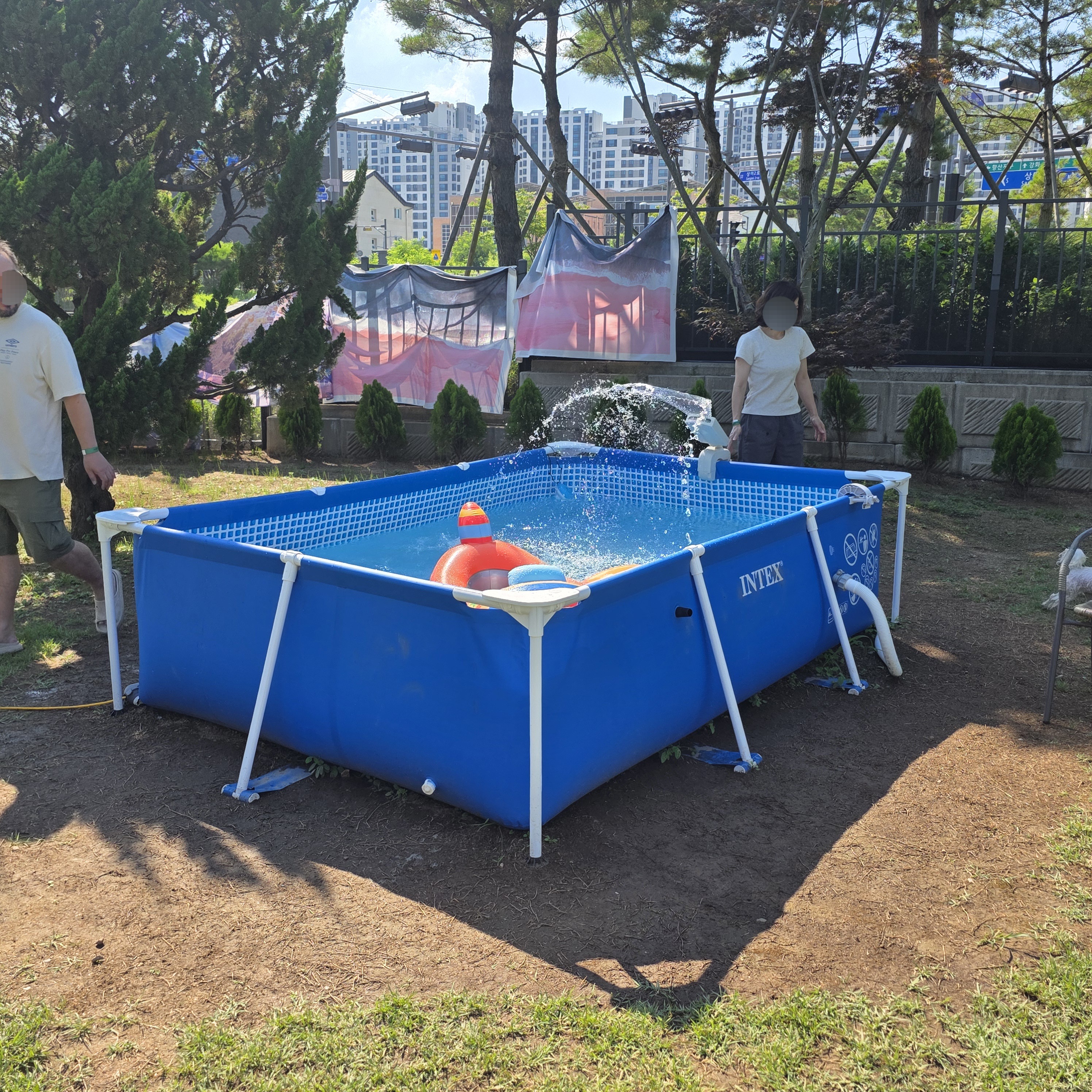 강아지들 물놀이 할 수 있게끔 야외 마당 한편에 강아지들을 위한 수영장도 마련되어 있었습니다