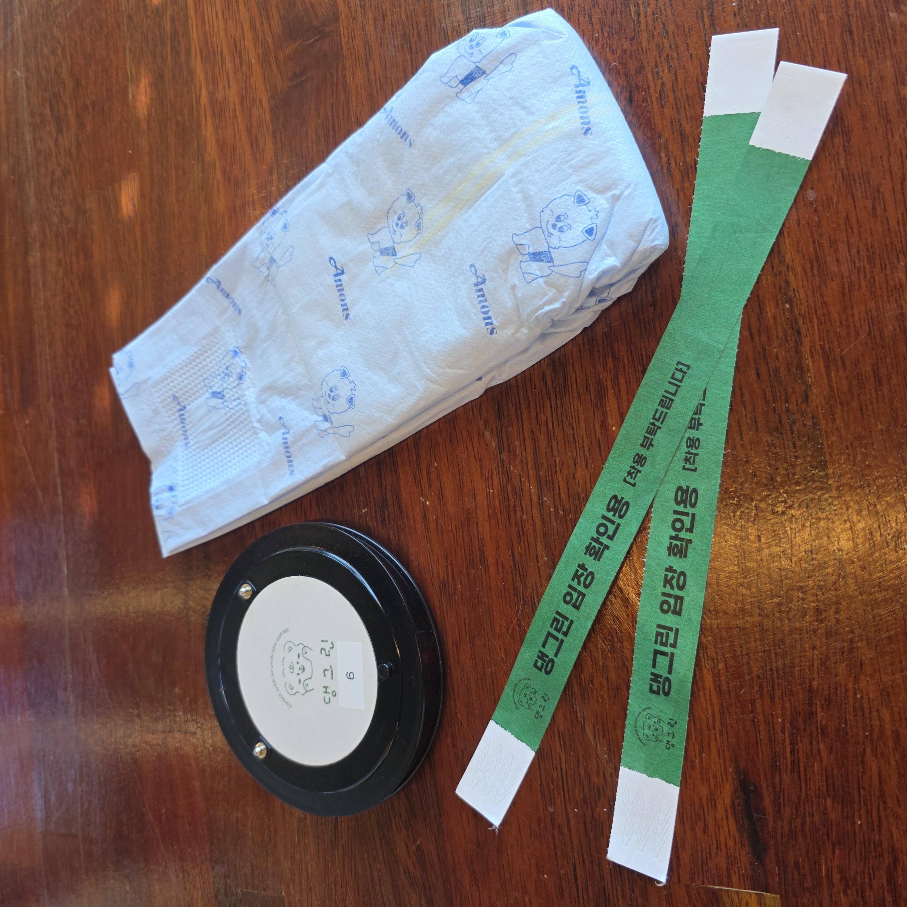 입장 팔찌를 제공하는데 이걸 팔목에 두르고 있어야 합니다.