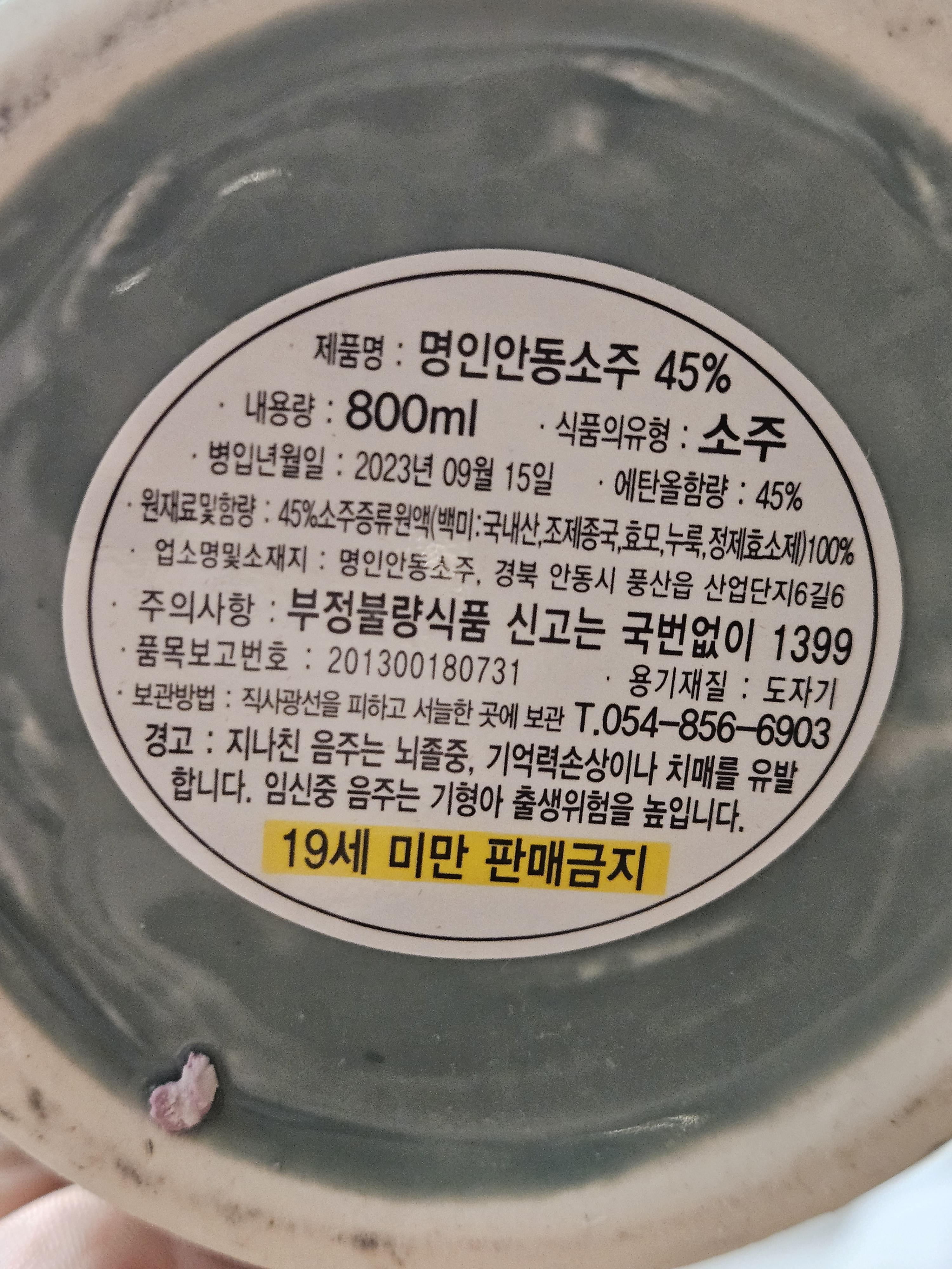 사이즈가 꽤 크고 묵직하다. 이 안동소주는 양반탈 모양인데 부부탈 세트도 있다.