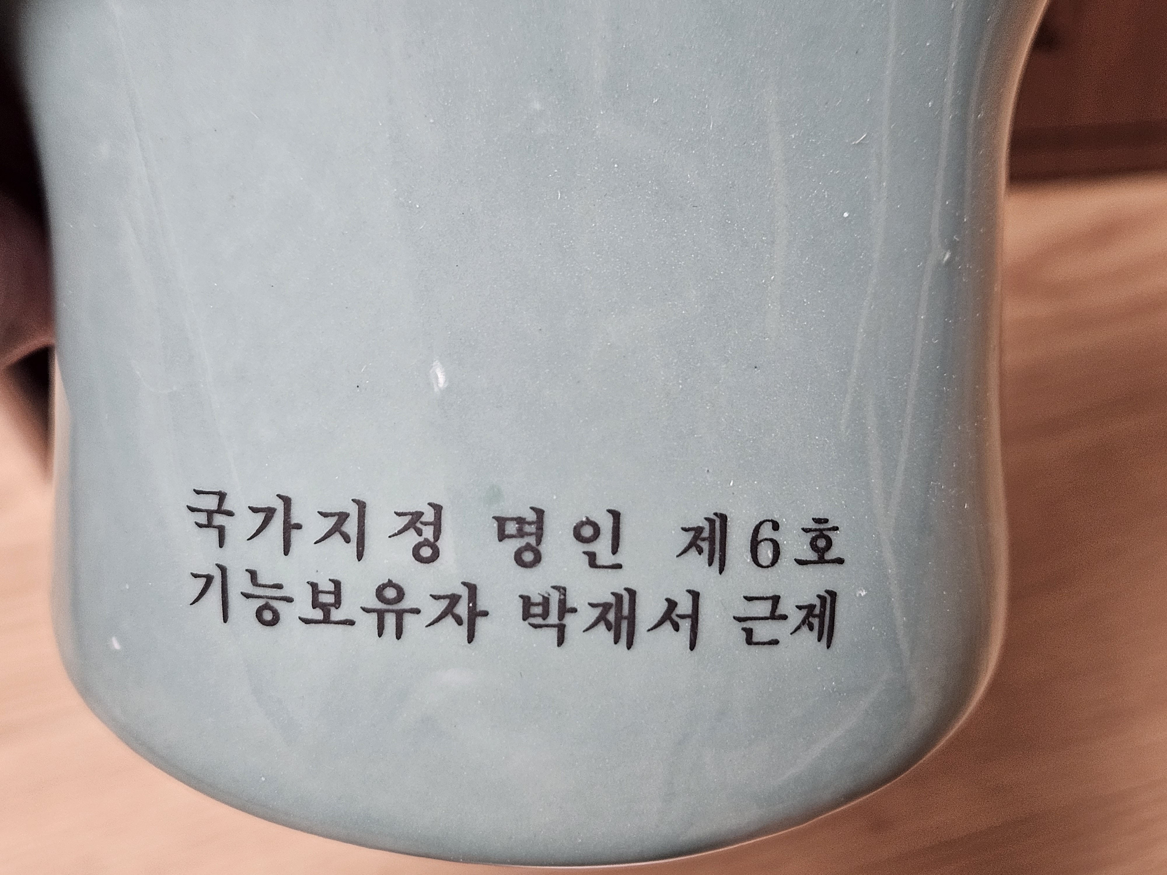 술병 뒷 모습은 사람 머리 모양처럼 곡선이 있고 술 이름과 명인이 만든 술이라고 다시 한번 더 표시되어 있다.