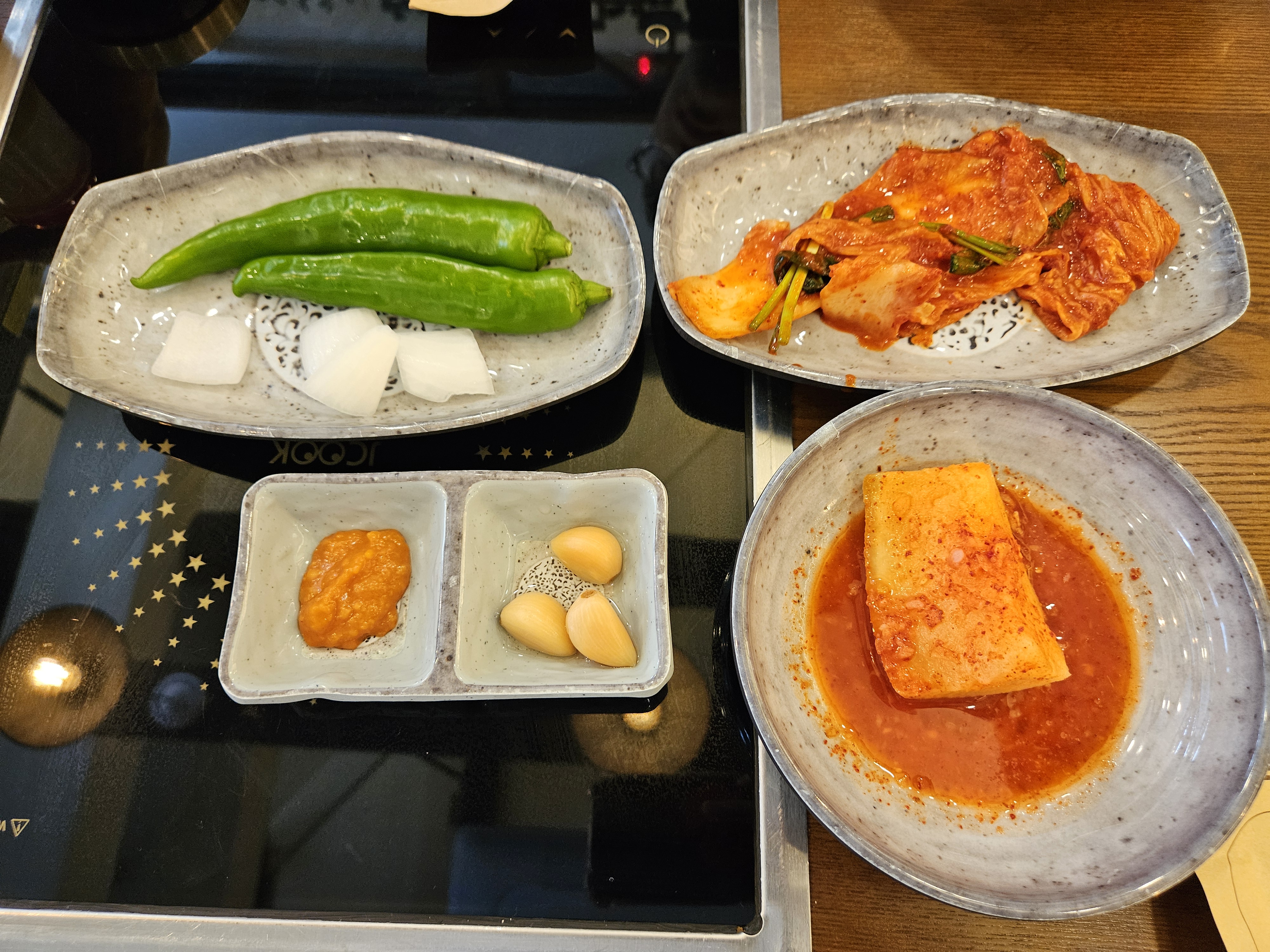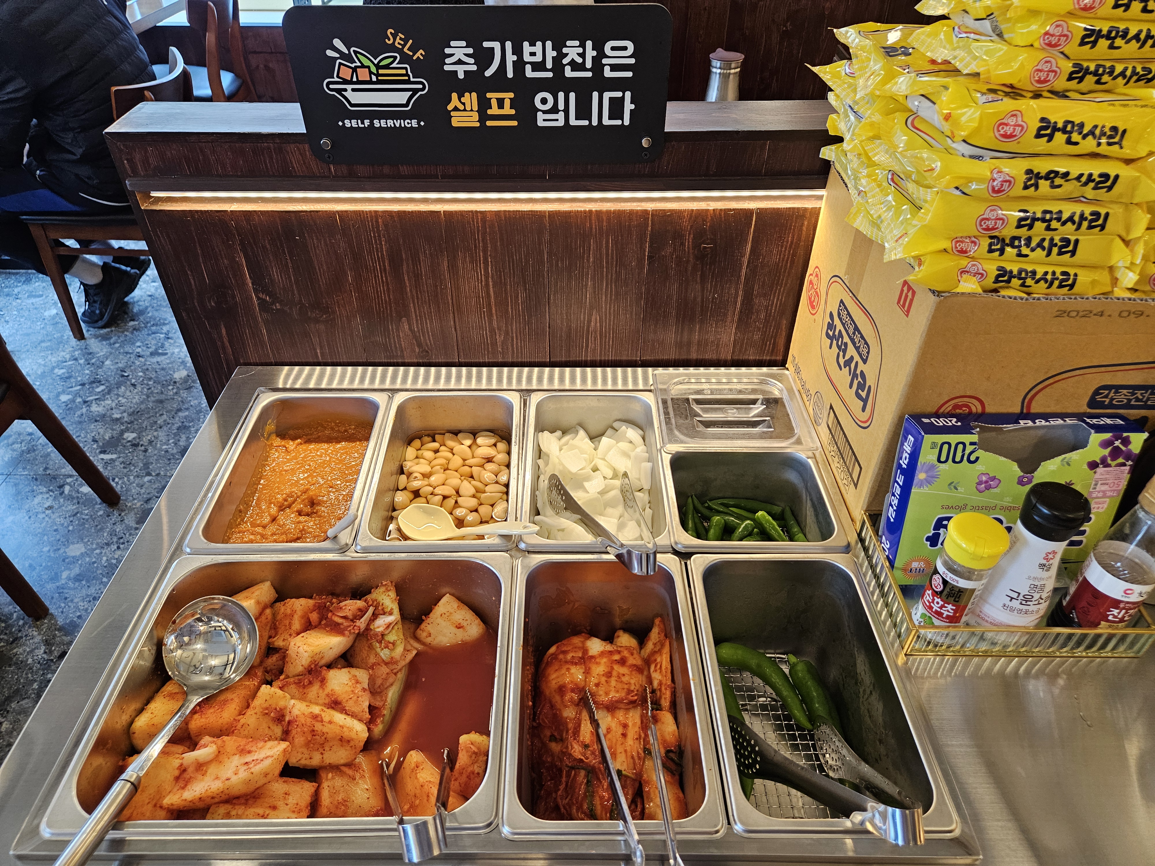 오이고추, 마늘장아찌, 쌈장 등 필요한 반찬은 셀프바에서 추가로 가져오면 됩니다.