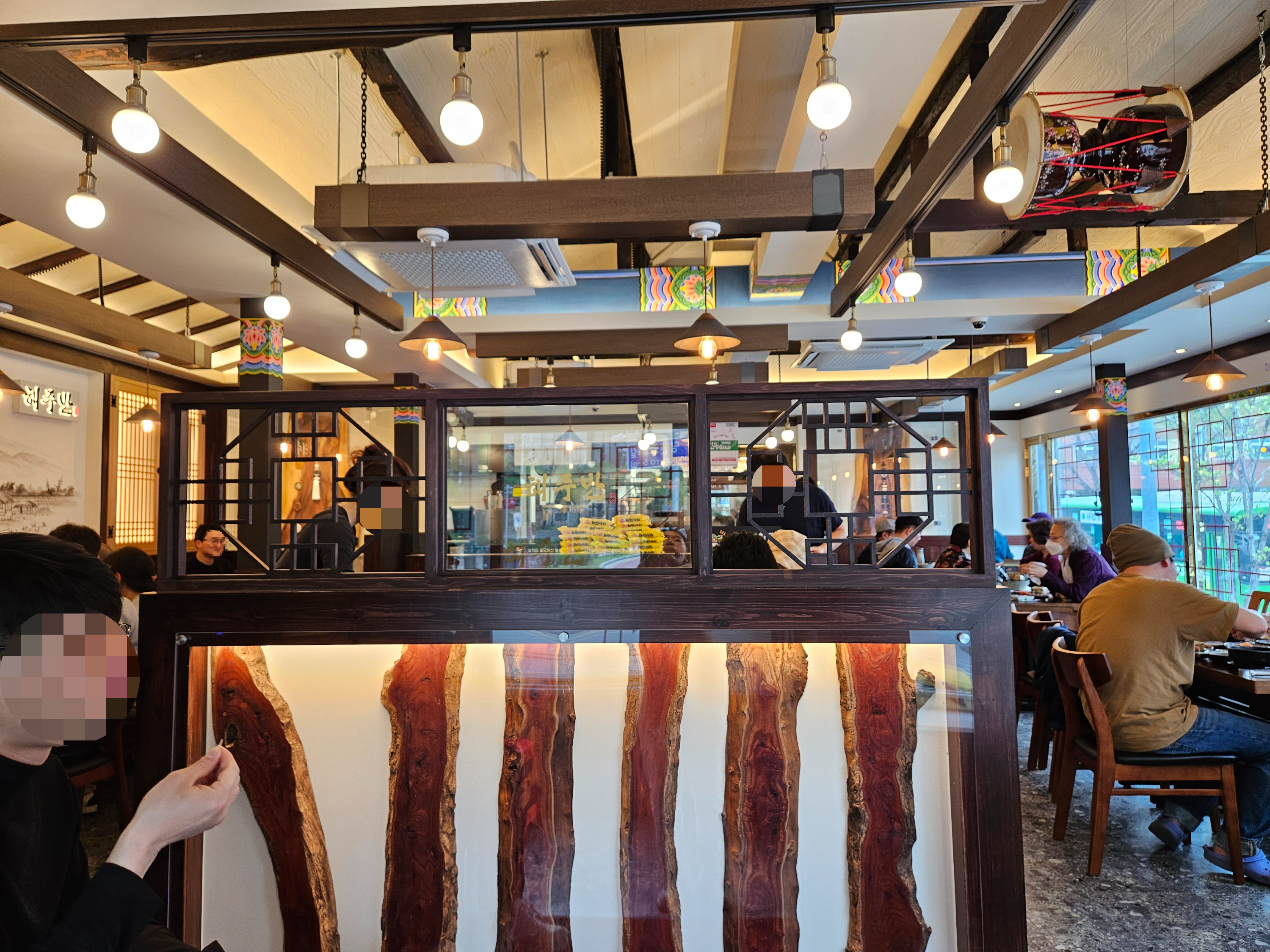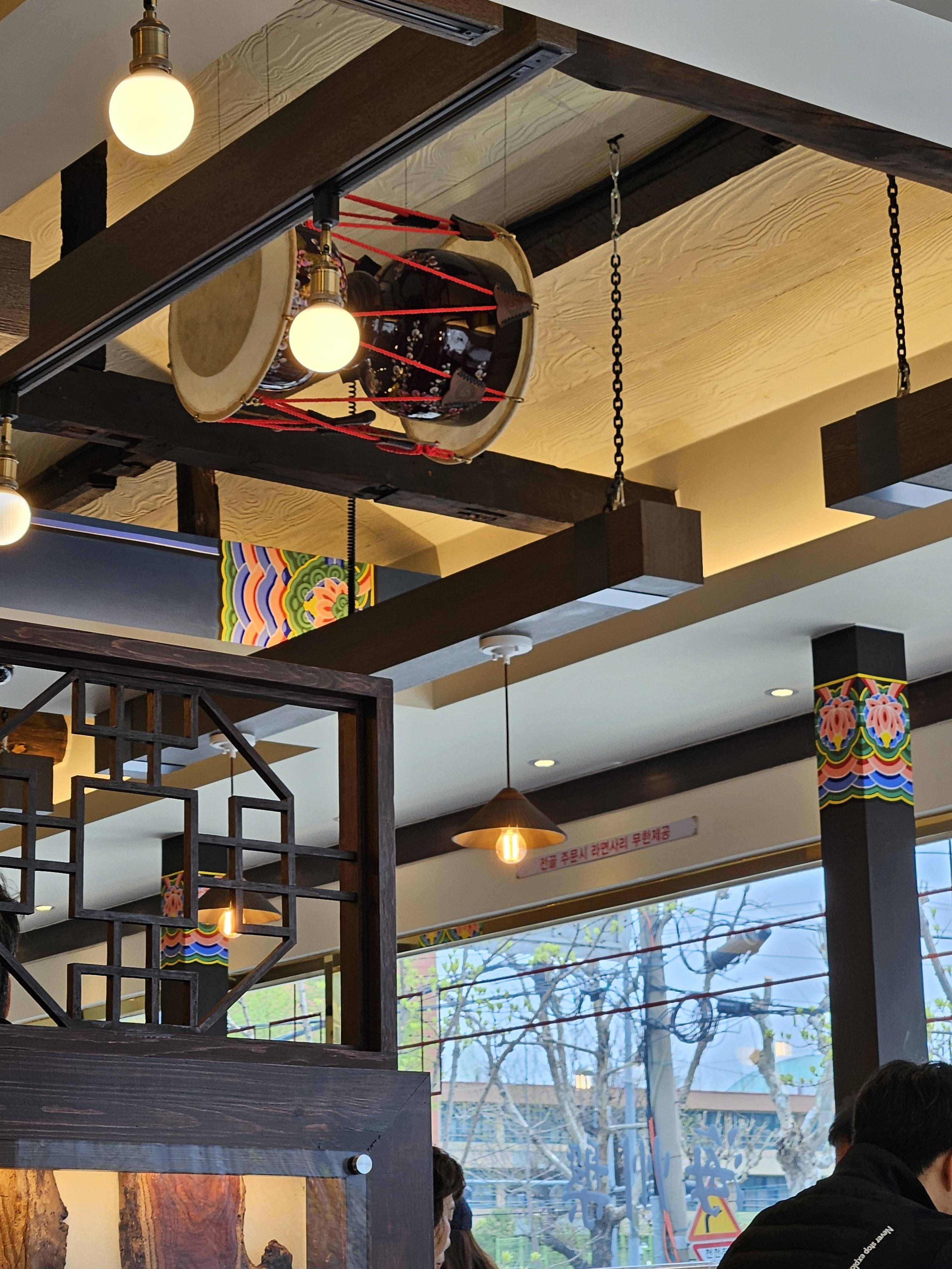 내부 모습도 옛날 느낌이라 한옥 스타일로 꾸며져 있다. 천장에는 장구가 달려있고 노래도 옛 노래가 나온다