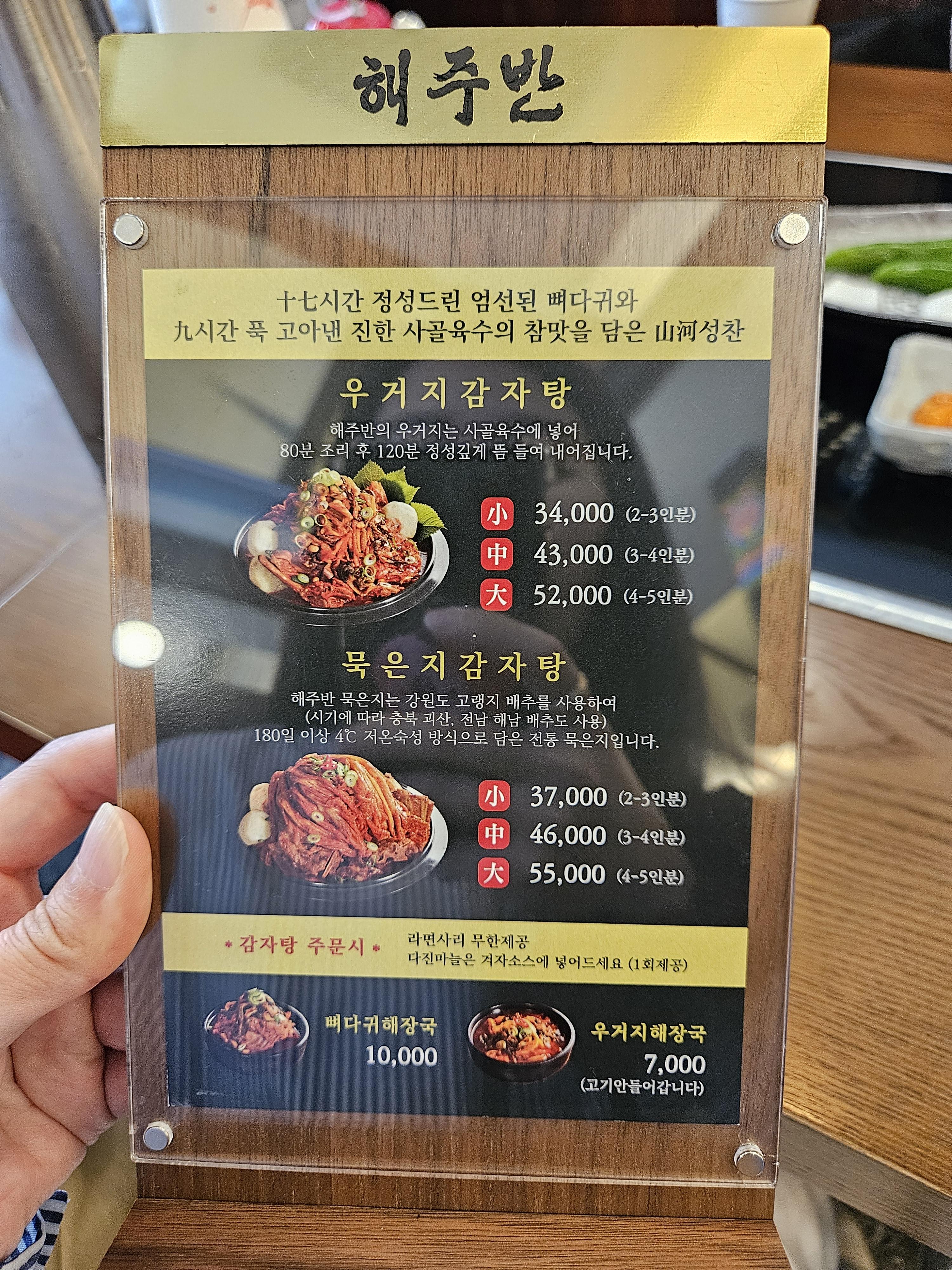 우거지 감자탕 - 소(2~3인분) 34,000원 / 중(3~4인분) 43,000원 / 대(4~5인분) 52,000원