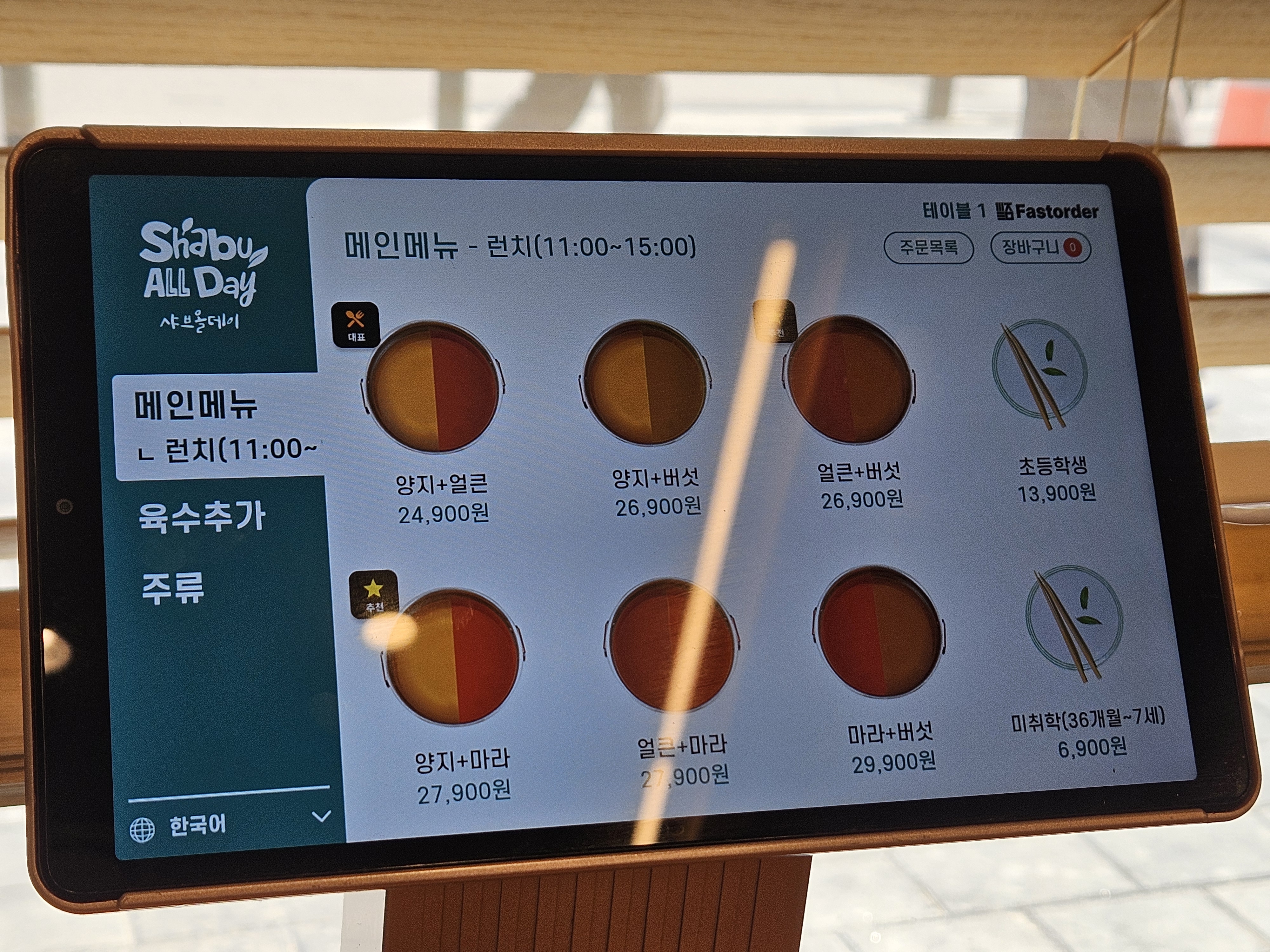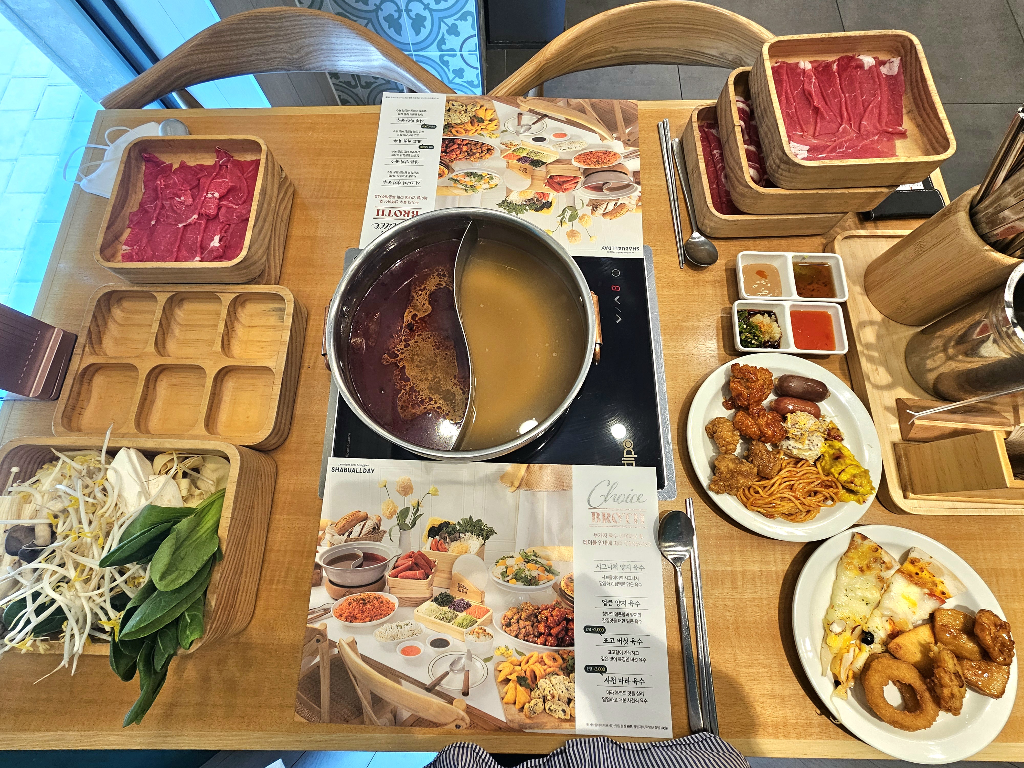 육수 선택하고 재료 가져와서 세팅하고 음식 퍼오고 하는데 시간이 은근 소요된다,