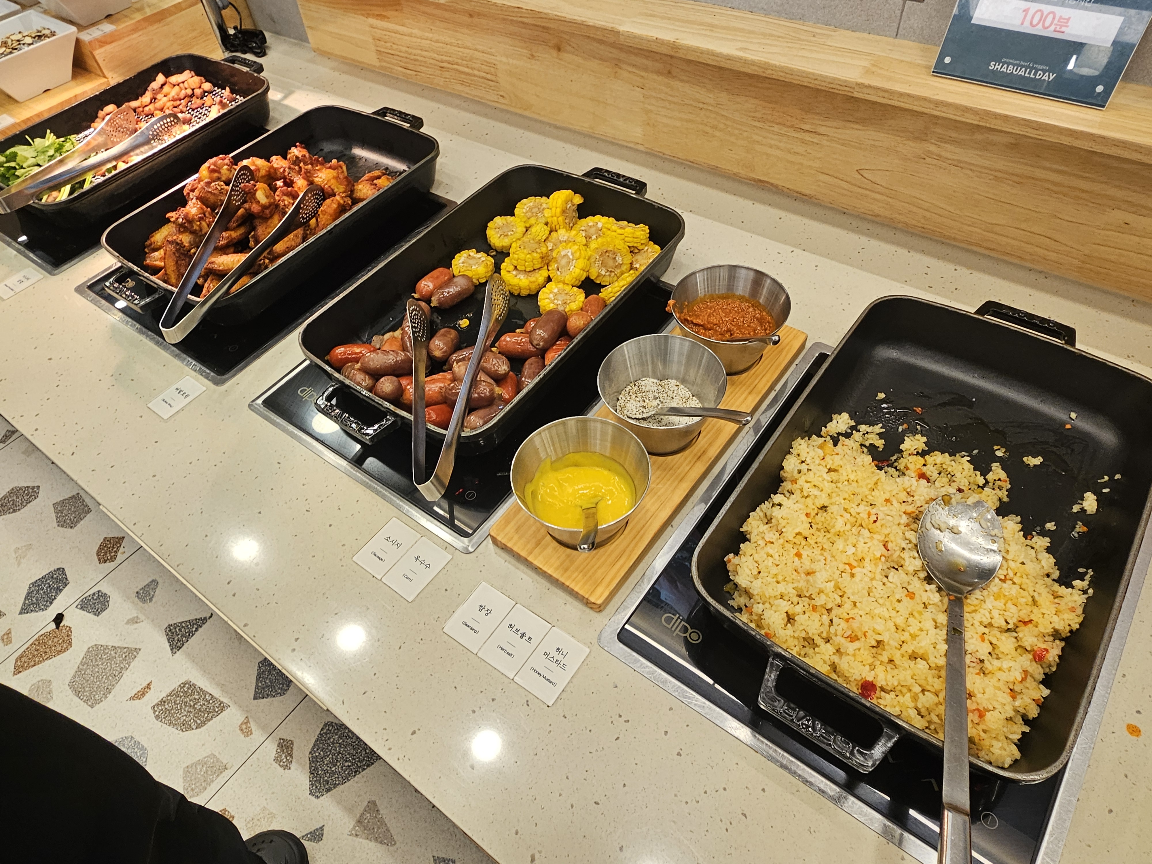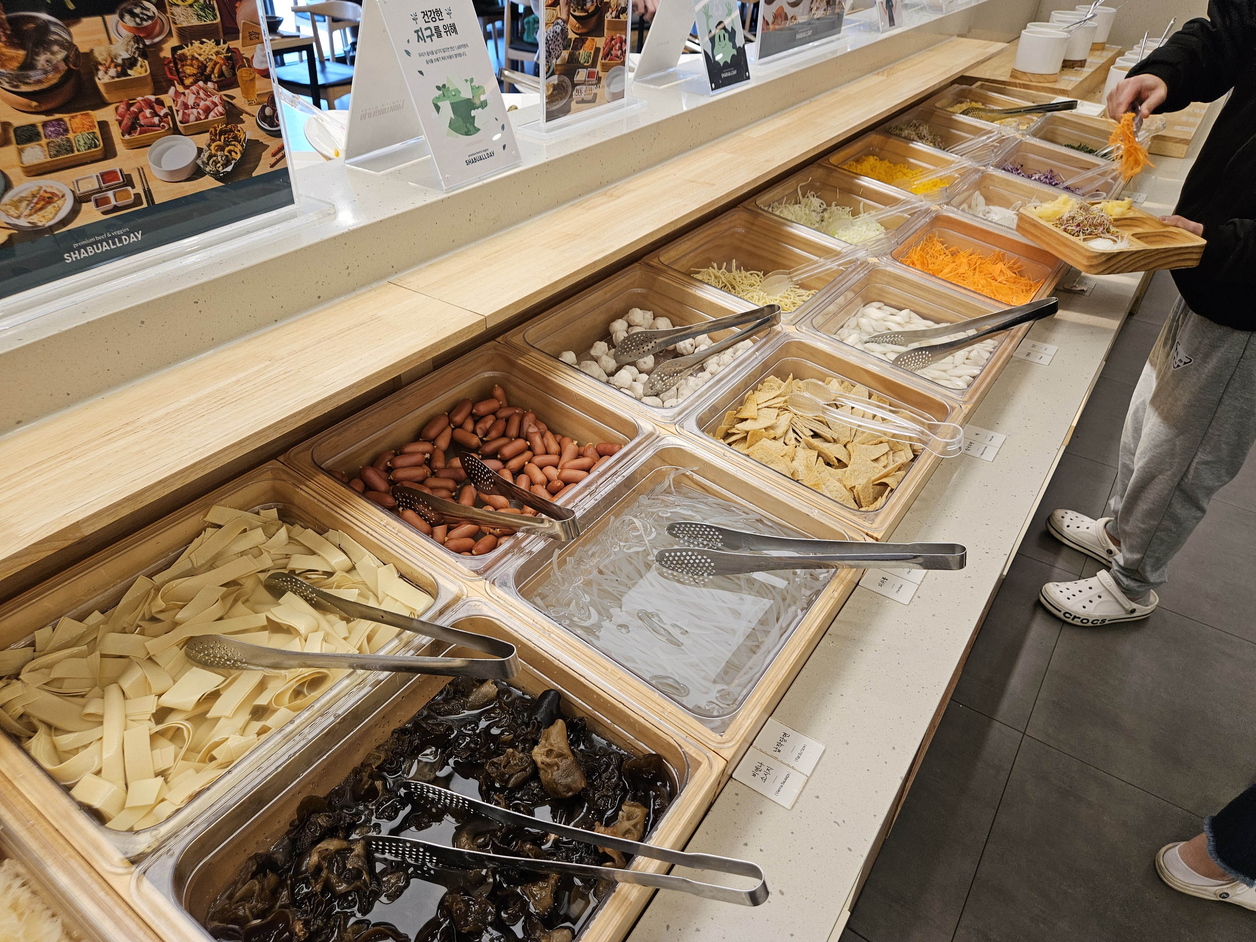 샤브샤브를 고기포함해서 다양한 재료들을 먹을 수 있을 뿐만 아니라 피자, 치킨, 파스타 등 다양한 메뉴들이 있어서 어른뿐만 아니라 아이들도 좋아할 만한 곳이다.