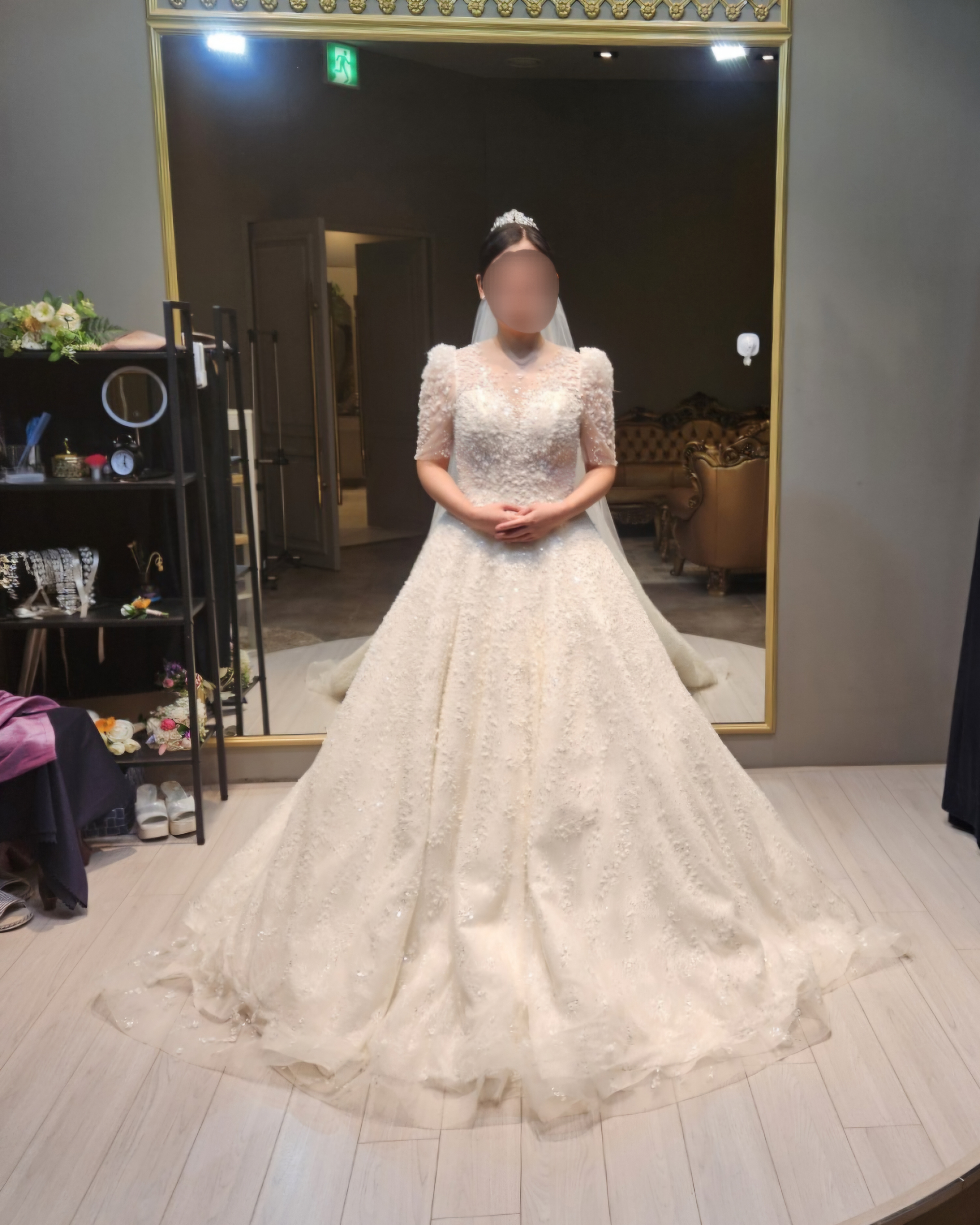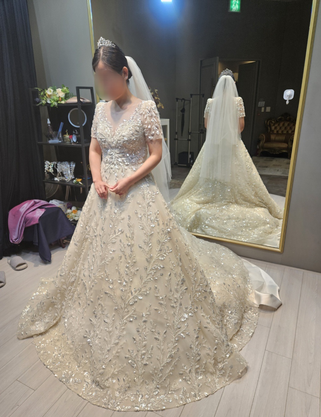 이 드레스도 잔잔비즈 드레스였고 조명빛을 받으면 은은하게 반짝였습니다