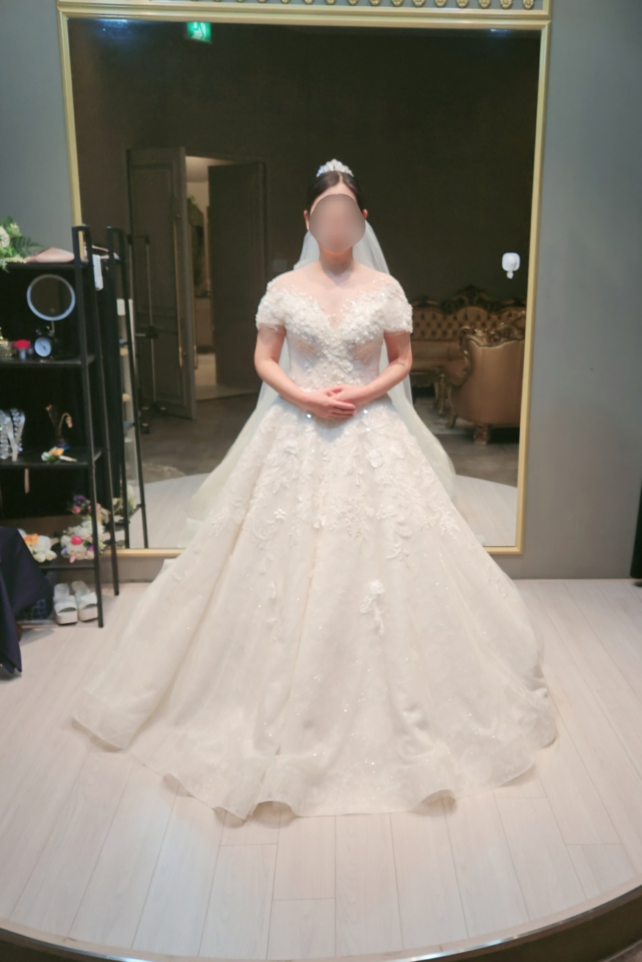 이 드레스에서 살짝 아쉬운 부분은 어깨뽕이였습니다. 이 어깨뽕 때문에 할까말까 엄청 고민했어요.