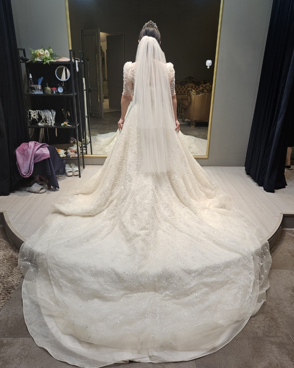 제일 첫번째로 입어본 드레스이고 마지막까지 결정을 고민했던 드레스 중에 하나입니다.