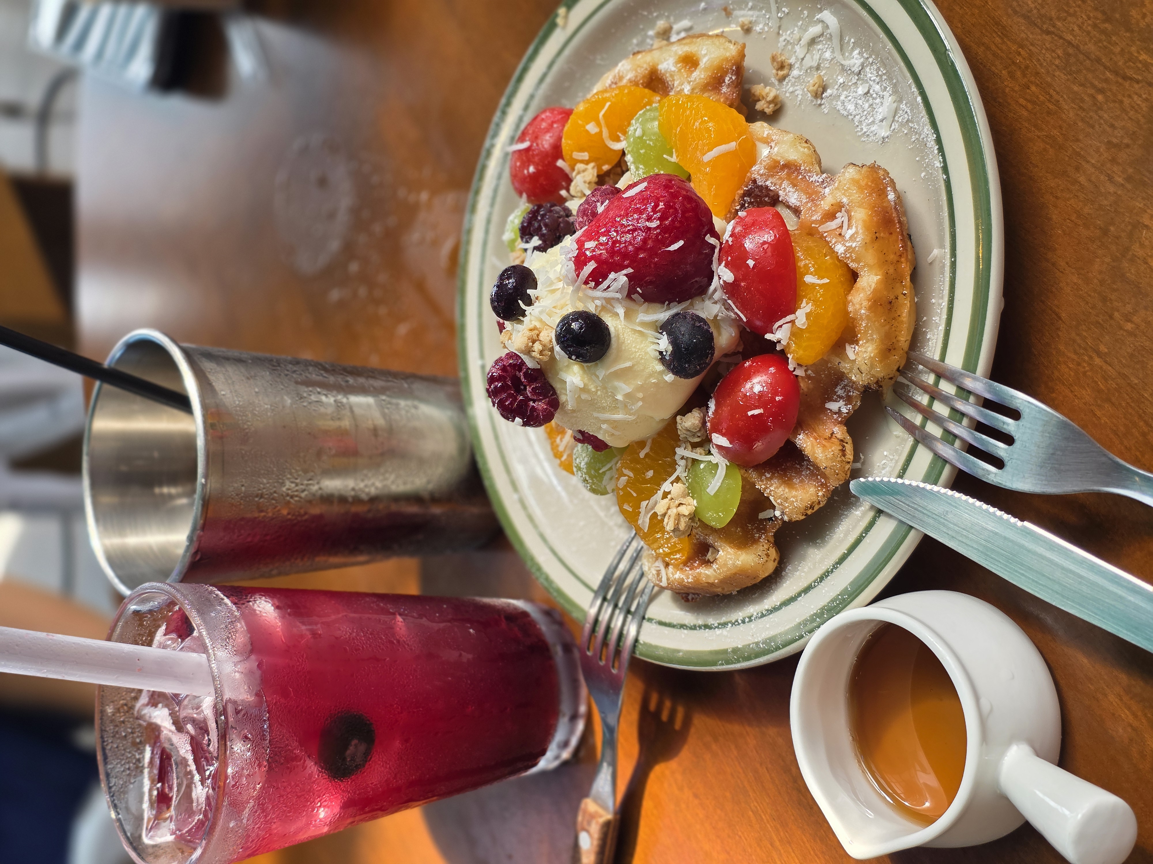 우리는 식사를 이미 하고 방문해서 간단하게 와플과 음료를 먹었어요