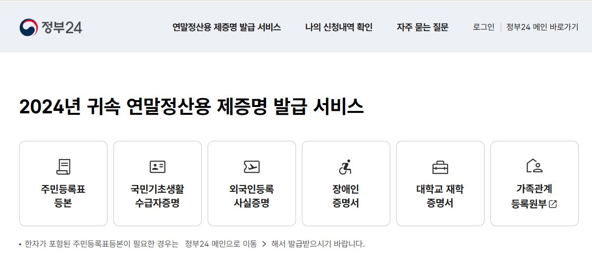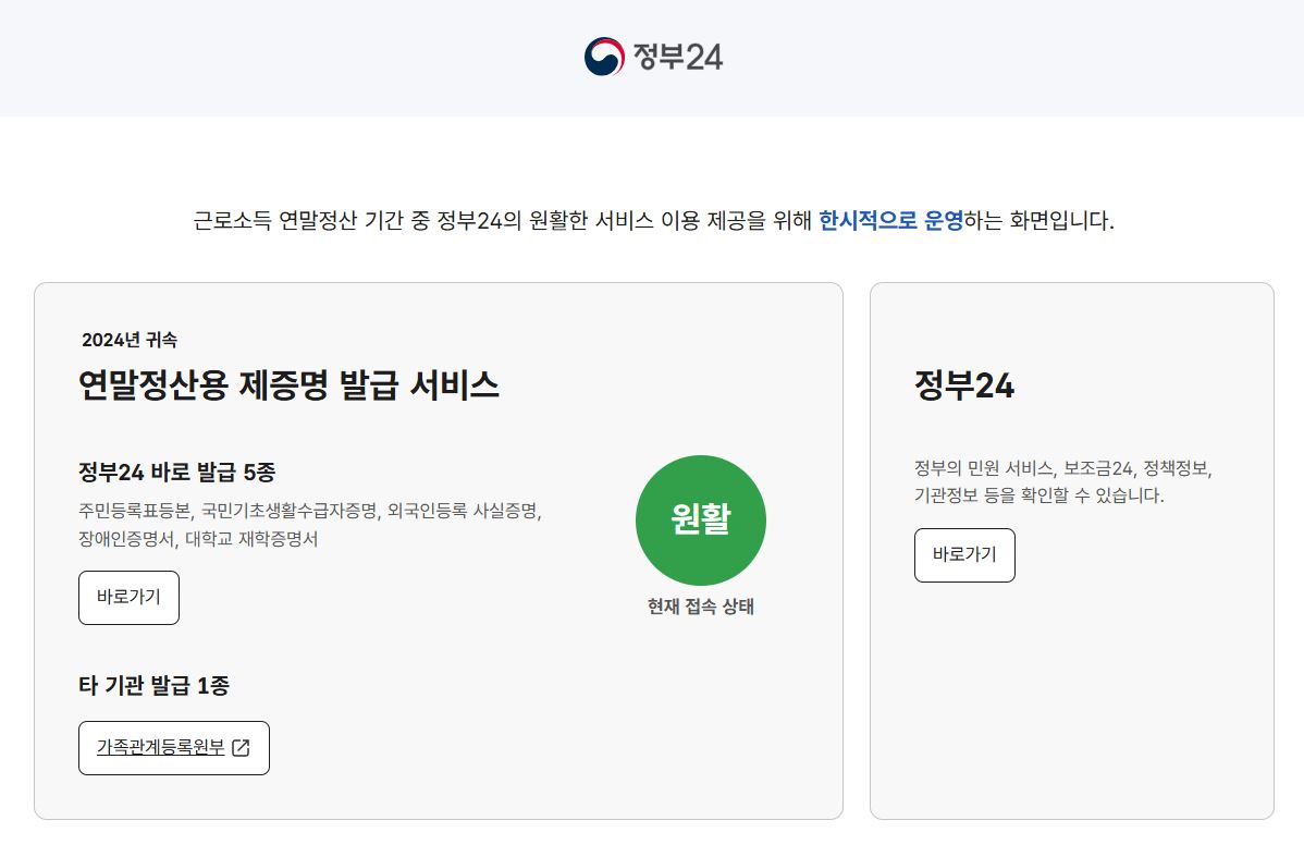 * 연말정산 기간에는 기존 정부24 서비스를 이용 못하나요?
