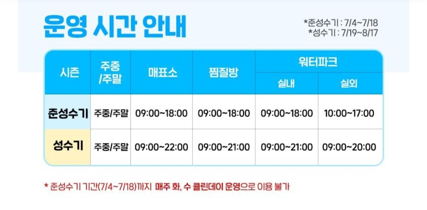 * 운영시간 - 9:00 ~ 18:00 / 성수기 종료시간 연장