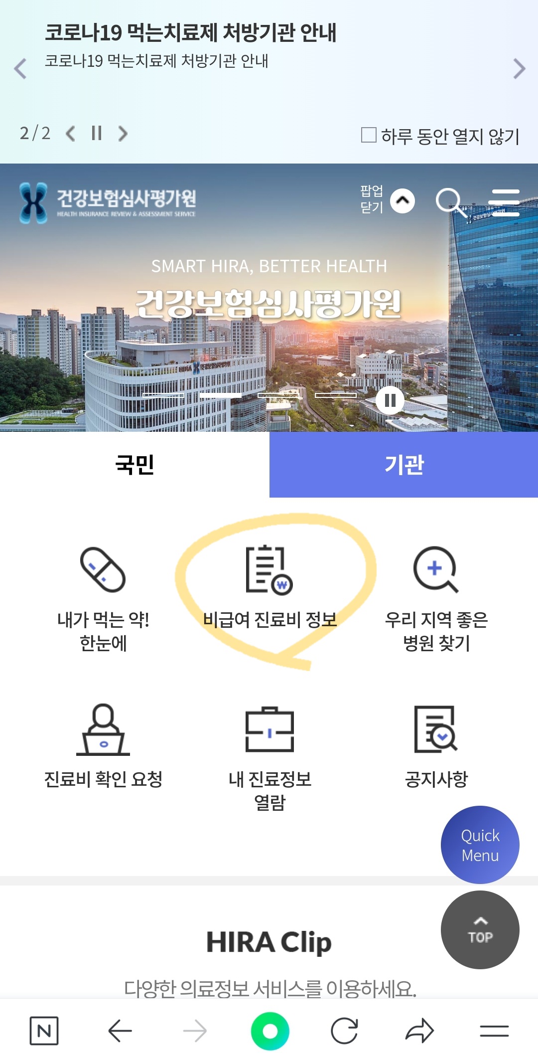 가다실9가는 비급여 항목에 해당되어서 1회당 예방 접종 금액이 높다. 병원마다 차이가 있기 때문에 우리 동네 근처에서 그나마 비용이 조금이나도 낮은 곳이 어딘지 사전에 알아볼 수 있는 방법이 있다. 건강보험심사평가원 사이트에 들어가는데 사이트를 최근에 업데이트를 한건지 화면이 이전과는 달라졌다.