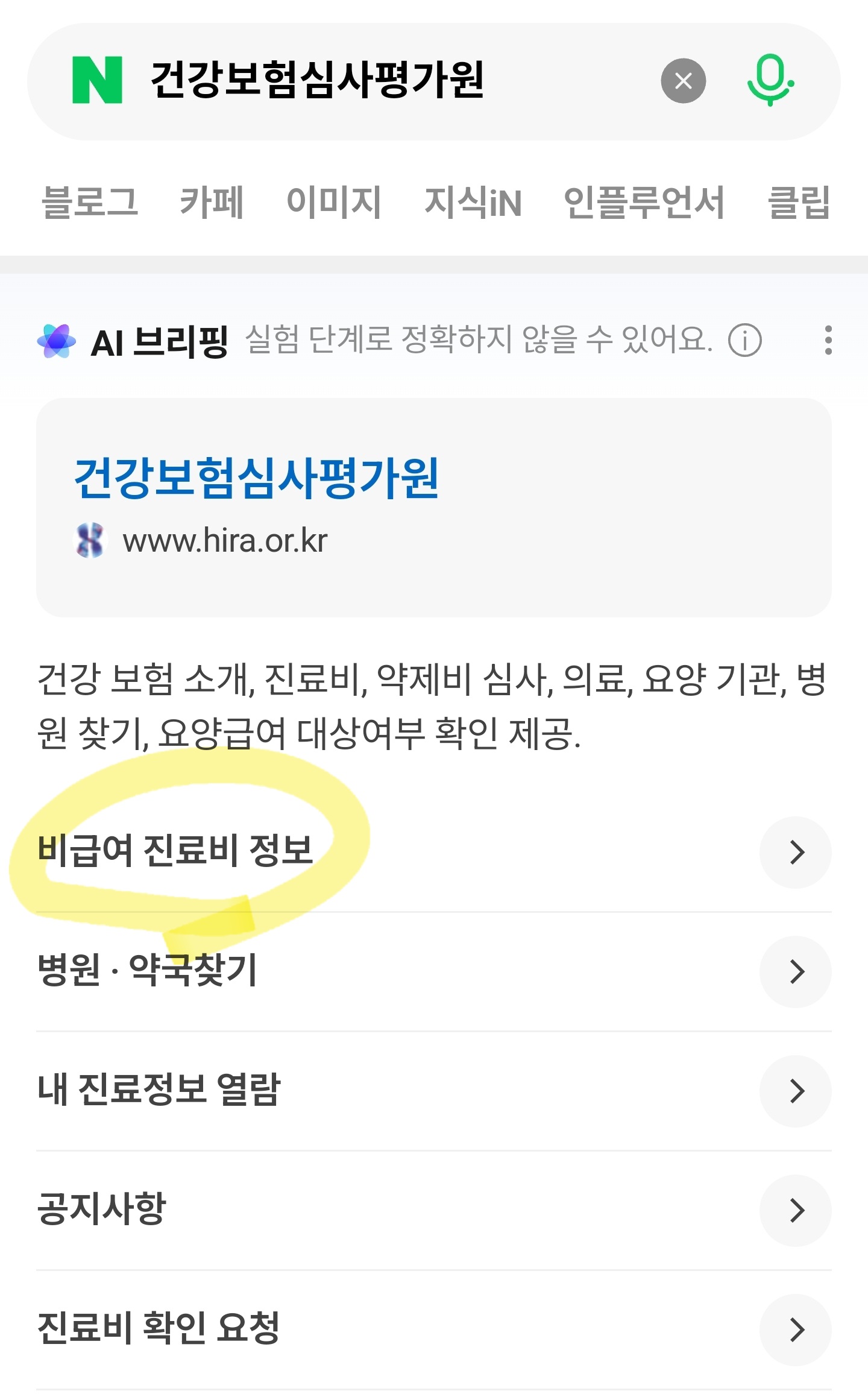 그러면 바로 비급여 진료비 정보가 보일텐데 클릭합니다.