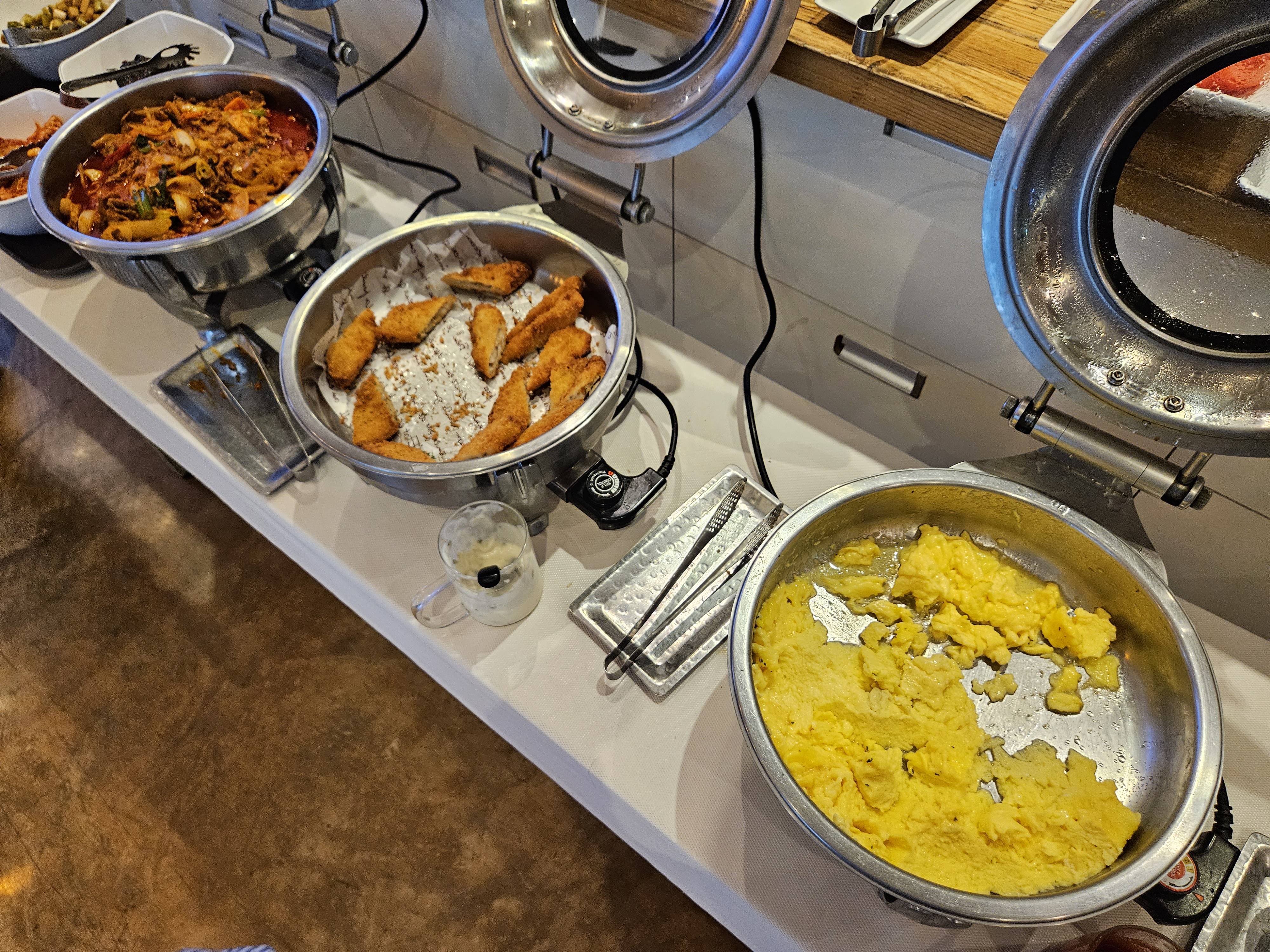 에그 스크램블, 돈까스, 제육볶음 등 한식 메뉴들도 있고