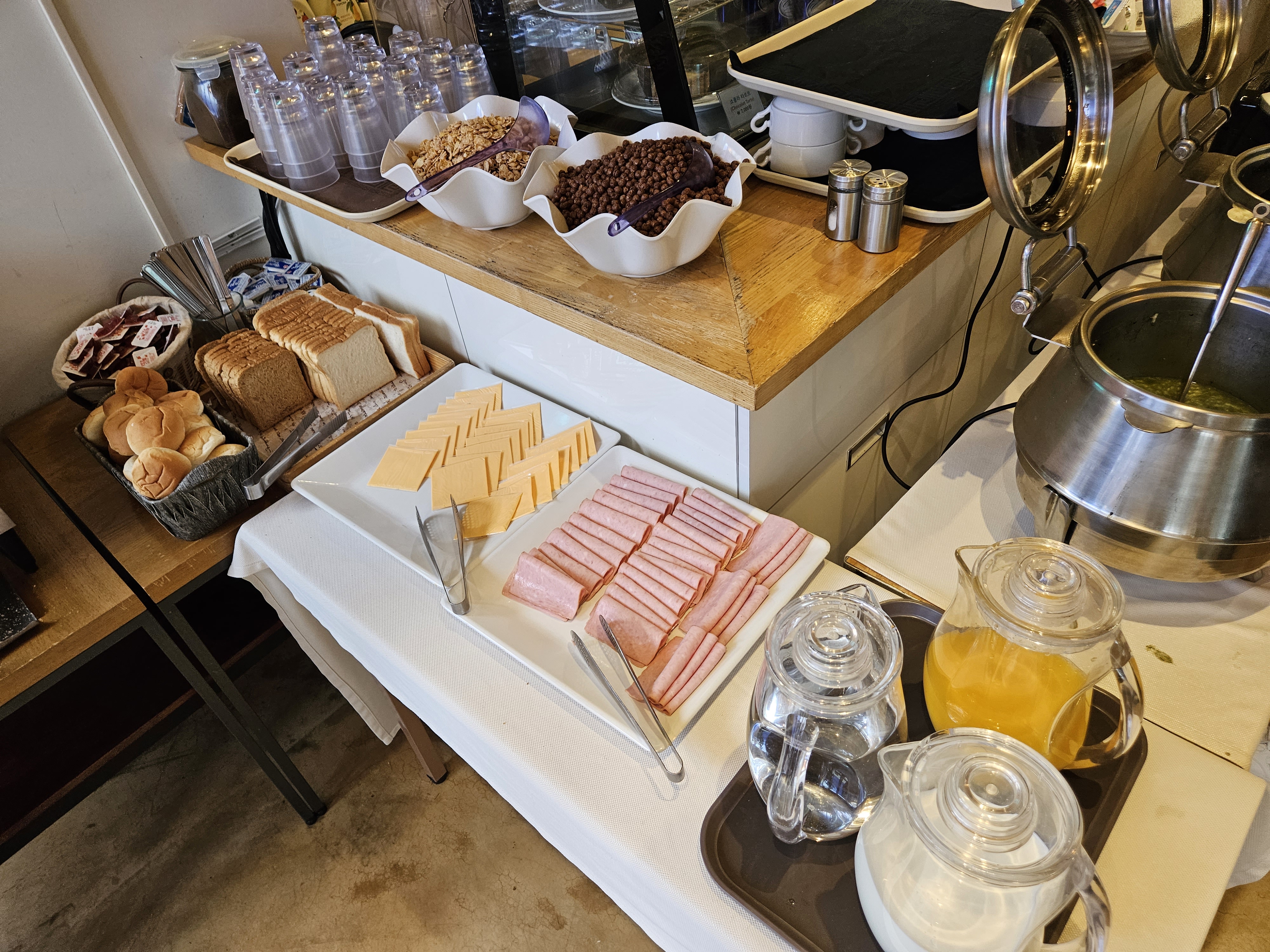 밥보단 토스트, 씨리얼 등 가볍게 먹고 싶은 분들을 위해 주스, 우유까지 다 준비되어 있습니다.