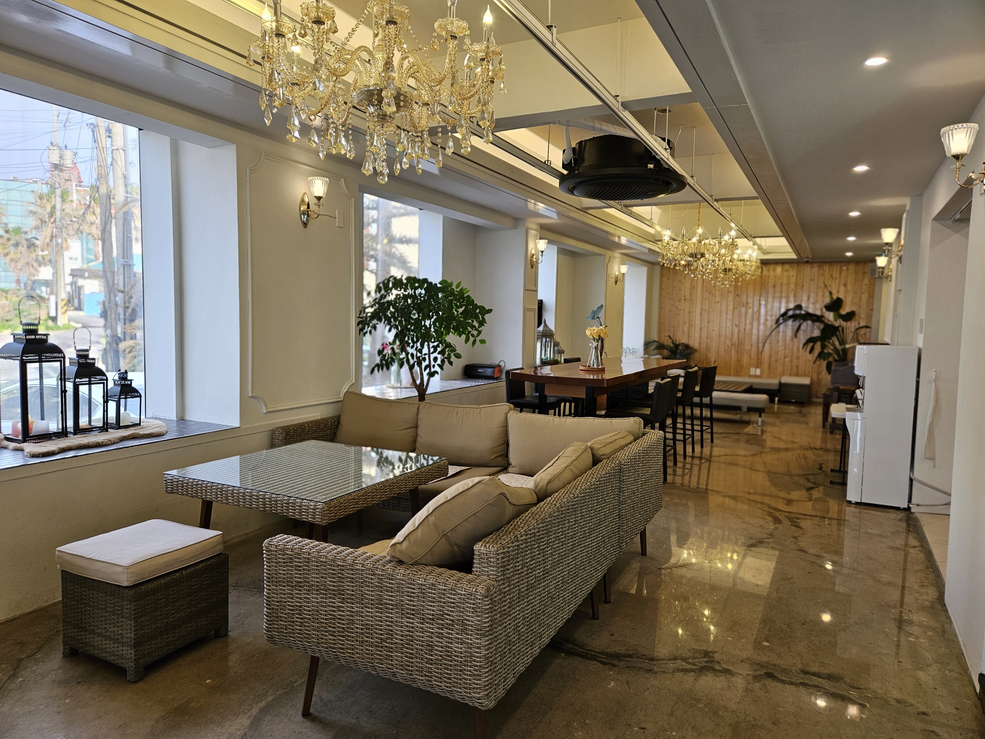 창가자리가 2~3테이블 정도 있었는데 오른쪽 끝에 있는 창문만 포토존으로 운영하고 있습니다.