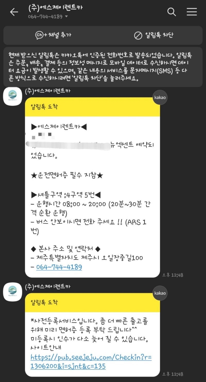 여행 전날 알림톡을 보내주는데 렌트카 셔틀버스 타는 구역 등이 있었고 사전에 미리 운전자 정보를 등록하면 출차를 더 빨리 진행할 수 있다고 하여 사전에 미리했다.
