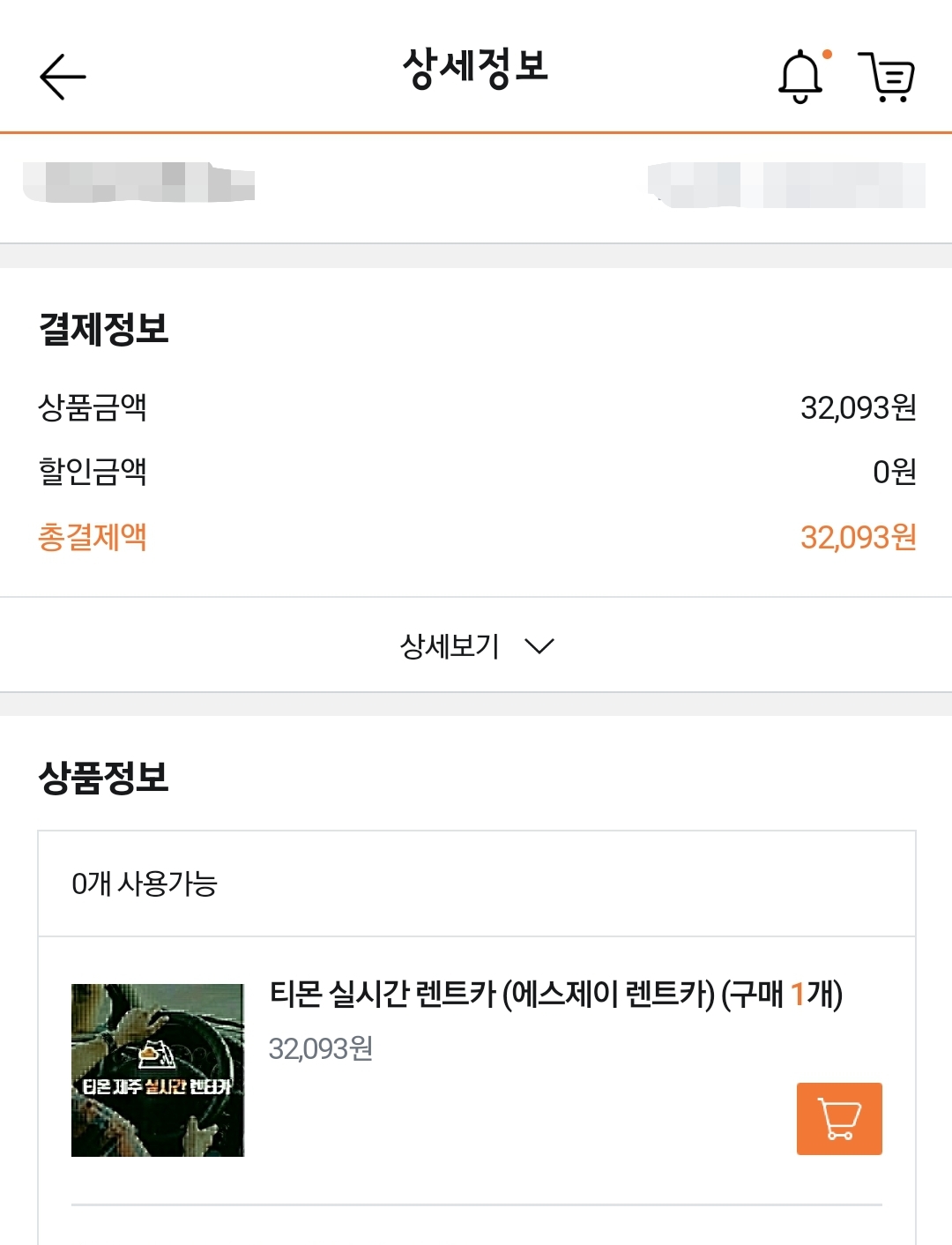 실제로 제주살이 4년을 하면서 간간히 차량이 필요하여 렌트할 때 티몬이나 쿠팡을 이용하곤 했고 이번 제주 여행에서 예매한 에스제이렌트카도 티몬을 이용해서 예매했다. 토요일 오후 3:30부터 월요일 오후 5시 반납에 완전자차 보험까지 했는데 3만원대 금액이 나왔다.