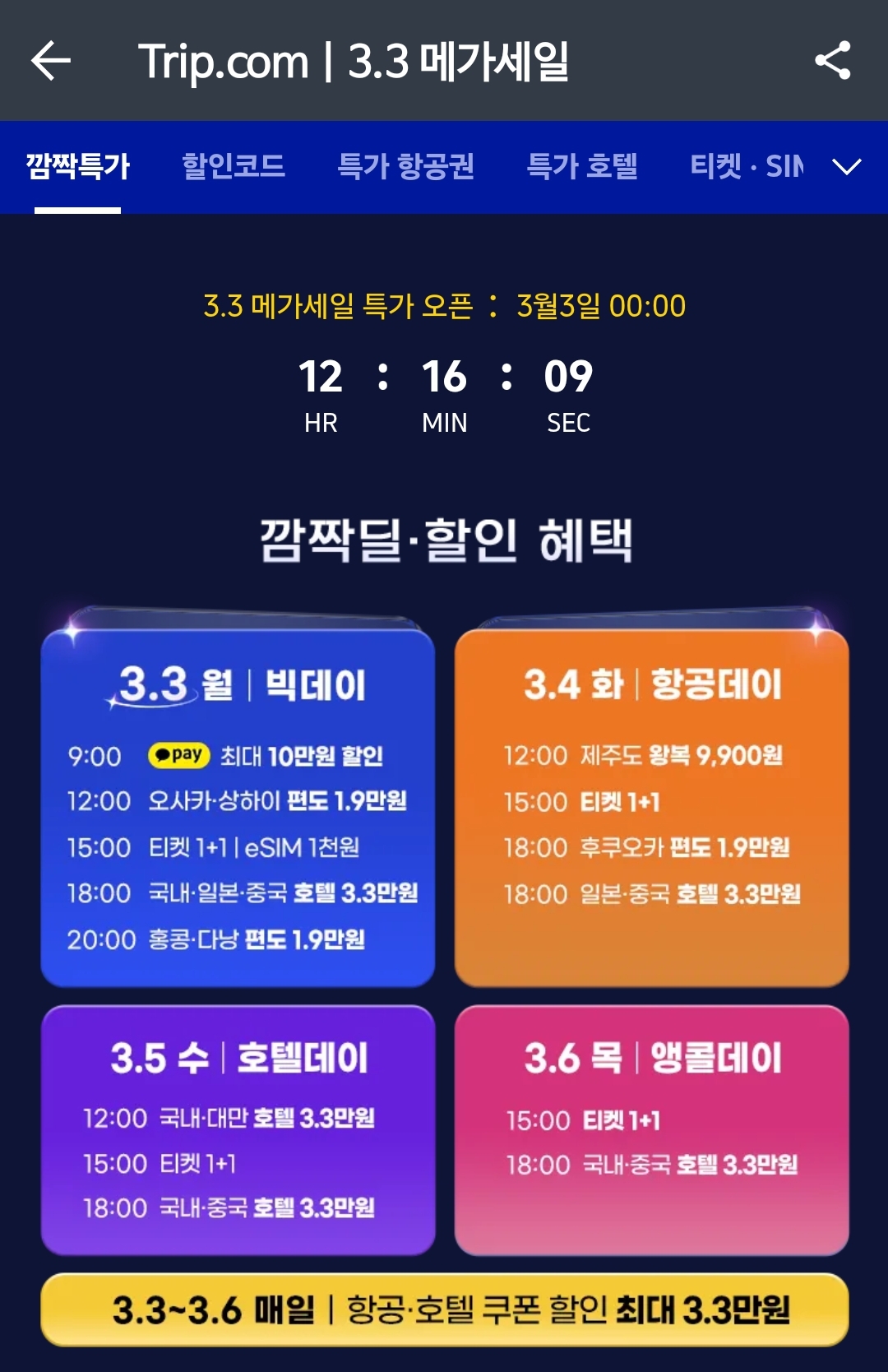 트립닷컴 3.3 메가세일 기간