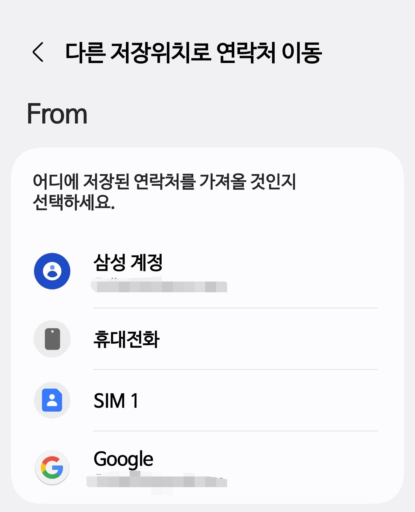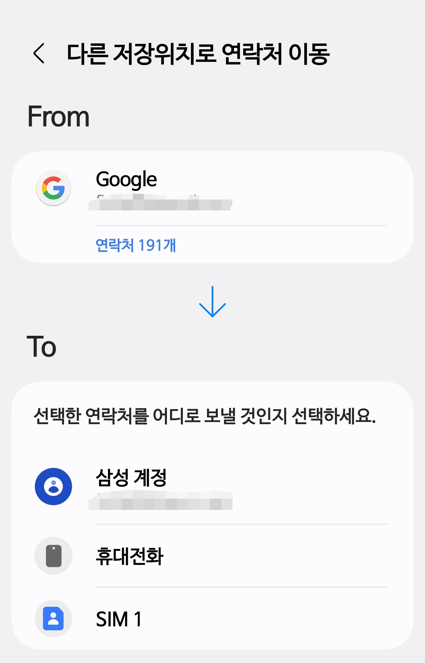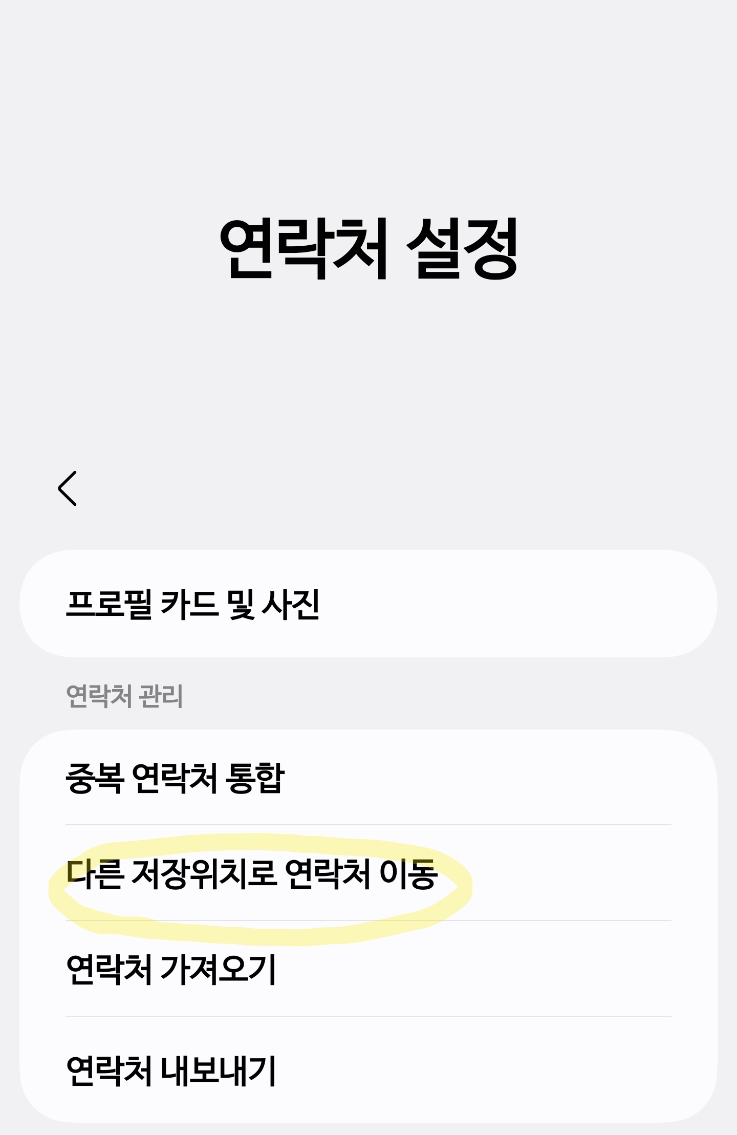 다른 저장위치로 연락처 이동하기
